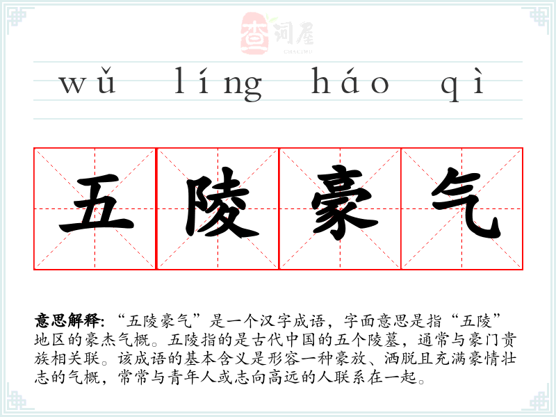 | 五陵豪气 | 指高门贵族的豪迈气概。 |